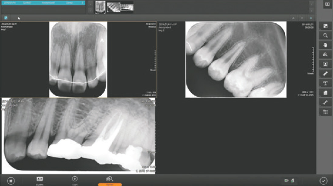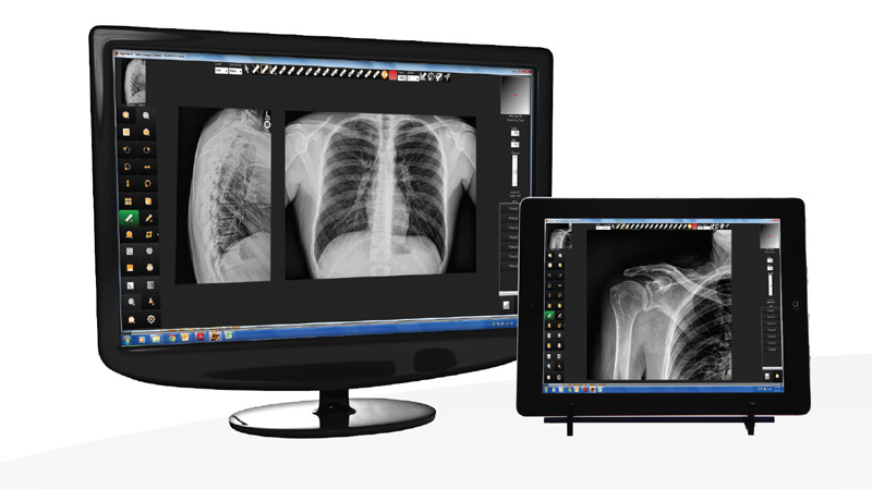 A single, unified software for all of our Flat Panel digital systems, ExamVueDR is designed from the ground up to maximize your office workflow. Usable as a stand alone station for the small office or for sending images to a larger PACS, the ExamVueDR includes everything needed for x-ray acquisition and viewing, including DICOM Worklist and Image Stitching.